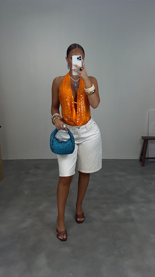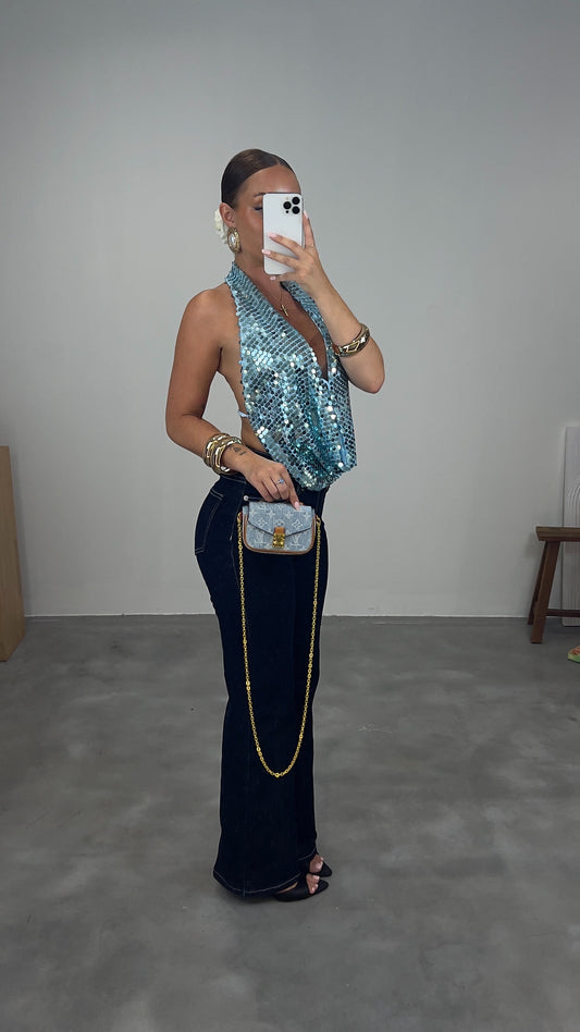 Top plongeant sequin - bleu ciel