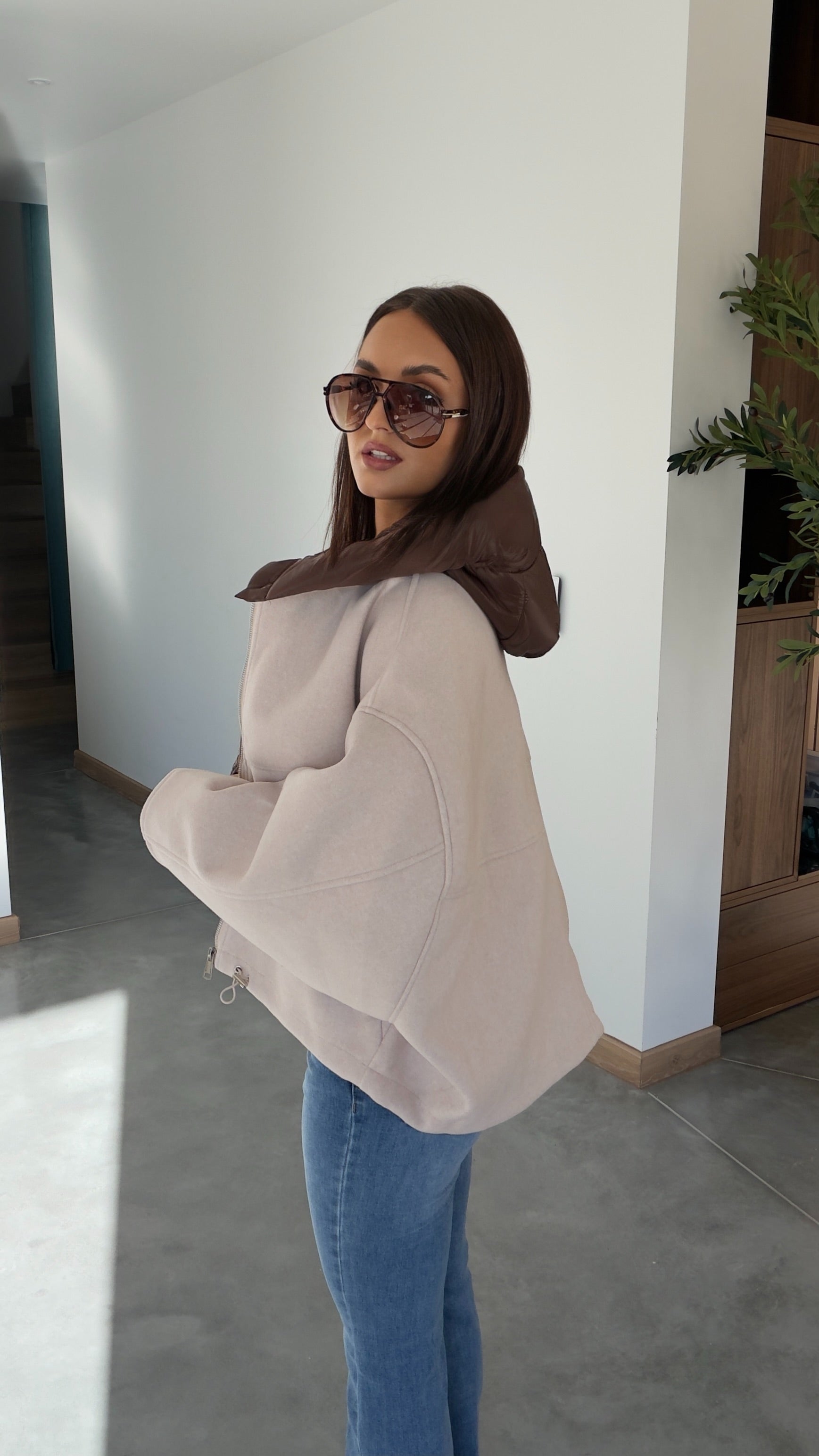 Manteau bi matière - crème et chocolat