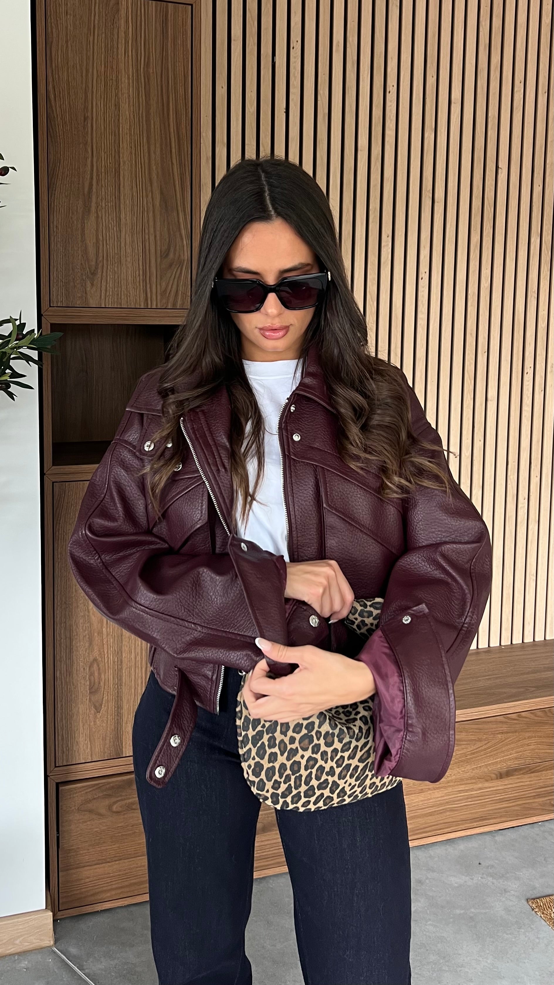 Veste similicuir - bordeaux